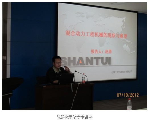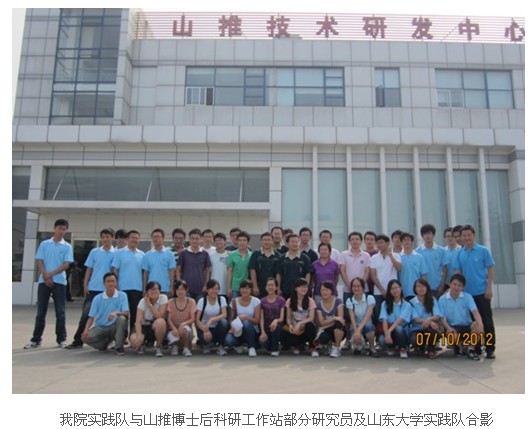 最后,长安大学工程机械学院教师,山推股份博士后科研工作站赵勇研究员作了题为混合动力工程机械的现状和展望的学术讲座。赵研究员从混合动力工程机械的研究背景、混合动力系统、国内外混合动力工程机械发展现状和展望、我国混合动力工程机械的研发现状和主要技术难题、卡特彼勒D7E混合动力推土机介绍和山推拟研发的SD24E混合动力推土机介绍六个方面入手讲述了混合动力工程机械的现状,发展和未来,强调了混合动力工程机械研发的重大战略价值。会后,我实践队员就工程机械相关问题和赵研究员进行了深入的探讨和广泛的交流并和科研工作站的科研人员以及山东大学社会实践队合影留念。