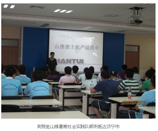 13:30,我实践队乘公司班车抵达山推股份有限公司技术研发中心,参加了公司特地为我们安排的学术讲座活动。