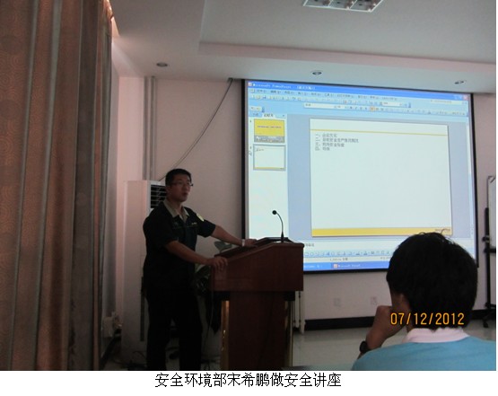 9:30,传动事业部下属的安全环境部负责人宋希鹏做了题为传动事业部“基层,基础”工作汇报的安全专题报告。报告从部门文化,目前安全生产情况,环境保护三个方面展开。强调了“安全的深度,幸福的温度”的安全文化理念,立足现场,责任到人,从基层抓起,从基础抓起,实时掌握第一手资料,确保员工安全生产,幸福全家。在环境保护方面宋老师从工业垃圾的概念与分类入手,深入阐述了工业垃圾的危害以及工业垃圾的处理方法。报告指出,工业垃圾经分类净化后,必须经过严格的检测达到国家排放之后方能排放。凡是为达标者,相关工段立即停产整顿,体现出了山推高度的社会责任感。
