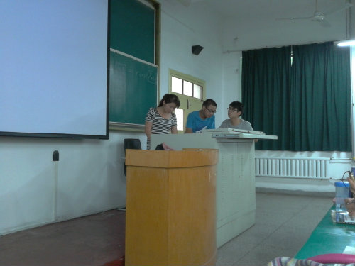 2012年7月9日,理学院“数学建模”暑期社会实践活动顺利开展。理学院数学建模暑期实践队成员于2012年7月8日下午搬入长安大学本部入住,并协助老师帮助没有宿舍的同学安排宿舍。实践队到达长安大学本部后,及时的联系了张引娣老师,和张老师叙述了我们实践团在这次数学建模培训中要做的工作,张老师给我们安排了平时的工作和建议,平时我们的工作是在上课前,去楼管处拿钥匙,打开教室门,打开教学设备,方便老师给我们授课,课后,关闭教学设备,打扫教室清洁,让同学们在一个干净的环境下学习。