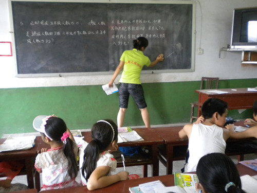 开课第一天,学生们便早早的来到学校,迫不及待的想马上开课。上午,我院队员们依次给学生们上了语文、数学、英语三节主课。课堂上,学生们认真听讲,踊跃发言,积极提问,对所教的课程表现出了十分浓厚的兴趣。下午,队员们跟据学生们的兴趣与爱好分班给学生们上音乐课和绘画课。那一声声唯美的童音和一幅幅美丽的图画,不仅体现出了孩子们的艺术天分,更体现出了我院支教队员们一丝不苟的教学作风。最后,队员们对学生们进行了一对一暑期作业的辅导答疑,帮助他们巩固了上学期的知识。