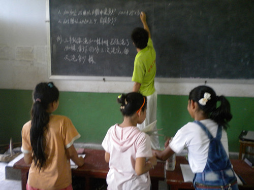 下午的课程是数学和英语,数学课上主要针对孩子们的暑假作业进行了辅导并穿插了一些数学上的趣味小故事。虽然天气很热,但是小朋友们听得十分认真,在队员们地指导下很快完成了今天的任务。英语课主要是训练情景对话和常用单词,在实际的语言环境中使同学们掌握语言的运用。最后今天的支教在愉快的英文歌曲中圆满结束。