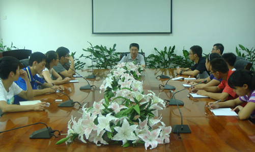 2012年7月15日,山东大学体育学院党委副书记郭学庆与我系暑期社会实践队员进行交流。