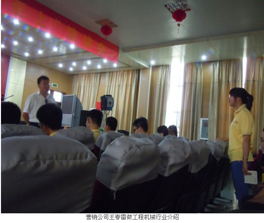 7月11日上午,我们和山东大学、合肥工业大写、浙江大学的同学一起在山东临工职工活动中心参加了由山东临工人力资源部部长王柯主持的欢迎仪式后,进入由山东临工人力资源部副部长付正洲给我们带来的企业文化介绍。在这里,我们了解了临工的5年发展规划,和他们企业背景和文化。山东临工是中外合资企业,而且他们的装载机和挖掘机发展前景非常好。虽然由于特殊原因没能按计划参观临工中心,但是下午由营销公司副总经理王春雷给我们带来的工程机械行业介绍,工程机械企业中的民族责任感深深震撼着我们的心灵,让我们肩负起振兴我国工程机械行业,缩短并且赶超国外最尖端水平。随后,我们和长大校友进行了亲切的交流,深刻感受到,临工给员工的幸福感和满足感,对我们了解市场就业和社会现实提供很大帮助。