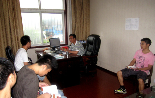 上午9:15座谈准时开始,出席座谈的有:副总工程师陈书让主任,毕业于西安地院;副主任张宽房,毕业于成都地院;项目负责张开盾,毕业于西安地院;项目负责张林,毕业于长安大学;综合员江桂,毕业于中国地质大学;以及地球物理系大学生就业调研队的全体成员。