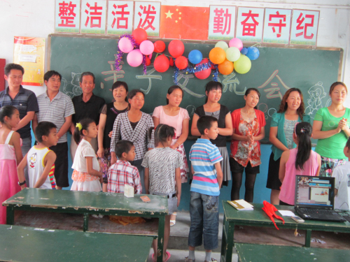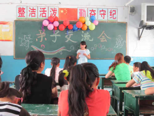 上午9:00,亲子交流会正式开始,首先由支教队同学担任的主持人石蕴美、满烁同学进行了极为煽情的开场,两位主持人分别讲述了各自对父母想说的话,初二年级代表张溪同学的演讲,在轻柔的背景音乐中,张溪同学讲述了父母对自己的爱,一篇演讲稿还未讲完,台下的张溪父亲早已泣不成声。接下来参加亲子交流会的学生分别对台下自己的父母或说或唱地表达了自己的感恩之情,也许说得不够精彩、唱得不够动听,但在台下父母的心里,这些都是最打动人心的天籁之音,此时交流会进行时会不时瞥见有人低头拭泪。之后的朗诵《烛光里的妈妈》、歌曲《感恩的心》和亲子互动游戏将交流会的气氛推向高潮。整个活动持续了九十分钟。