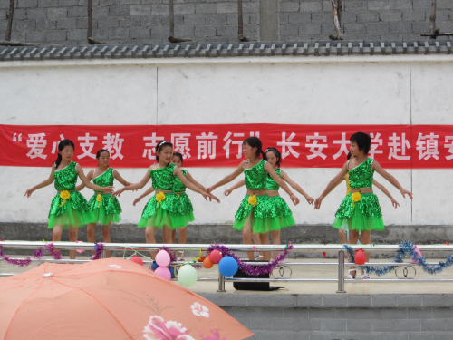 截止到2012年7月18日地测学院赴陕西省商洛市镇安县支教调研暑期社会实践活动已接近尾声,实践队在这天举办了一场以全校学生、当地村民以及实践队所有队员为主要演员的文艺汇演。本场活动的目的主要在于增加当地的文化氛围、总结本次活动的成果、提升实践队员与学生们之间的师生情与友情,同时也为了给此次社会实践活动做出圆满的收尾。