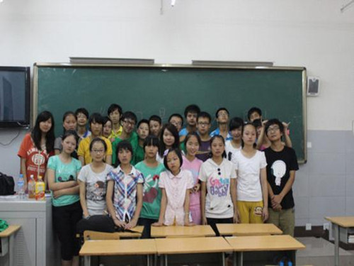 在此之前,志愿者们根据教学的需要已经分为初一,初二,高一3个小组,分别去教相应的年级。我院实践队统一选择了在初二年级任教。此年级分为A至F 6个班,我院实践队队长易碧担任了A班的班主任。在易碧的带领下,我们画黑板报,贴画纸,将课桌摆成弧形,整个教室看起来特别温馨。我们还把即将到来的孩子们的名字写成台卡放在课桌上,方便孩子找到自己的座位。