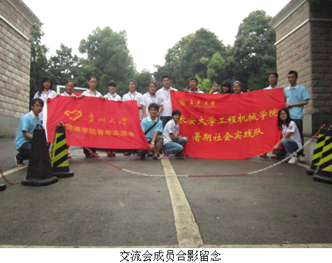 2012年7月14日 ,长安大学工程机械学院赴贵州省沙寨中学暑期社会实践队受到了贵州省贵州大学外语学院青年志愿者服务队员们的热情接待,双方围绕大学生暑期社会实践之宣传团史党史、支教支农调研等问题进行了友好深入的探讨。