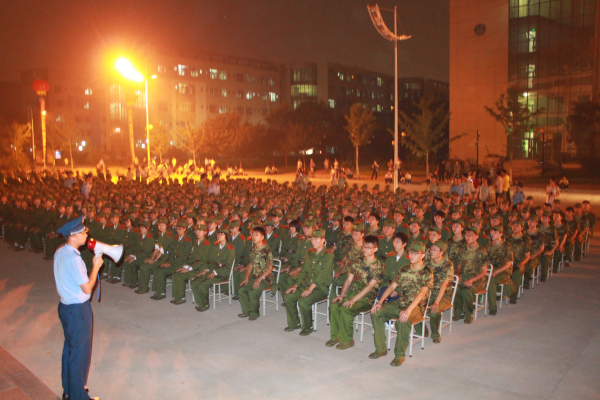 下午7:20的时候,电控学院各班就以班级为单位在预先安排好的地点坐定,等待着教官们的到来,当教官们排着整齐的队伍,迈着一致的步伐,走到新生面前时,每一位新生都不由自主的挺起自己的腰板,教官很快来到自己所带的排,开始向新生们进行自我介绍,之后各教官就开始向新生们讲解一些军人的基本知识,每位新生都听的兴致勃勃,有位教官指出军训的意义是磨练意志品质,培养国防意识和忧患意识”,强调了军训中的纪律及注意事项,并希望新生能够在接下来的两个多星期里,不怕苦不怕累,以饱满的热情迎接大学的第一堂课。八点左右,我院林书记,辅导员张翔,种超,高婷老师前往视察指导,并发表讲话。