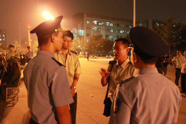 2012年8月30日 下午7:30,身穿军训服的长安大学2012级新生在各自指定场地站队,等待着在未来18天内将会一直陪伴他们的教官,进行新生与教官的第一次见面会,教官们以他们一贯严肃、硬朗的作风,给新生们留下深刻的印象。
