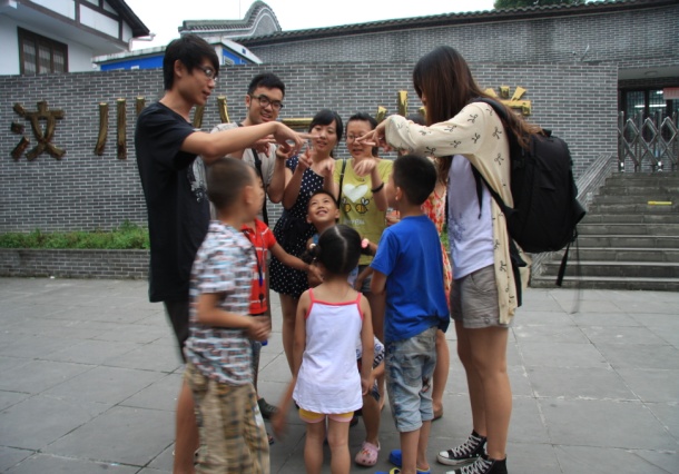 7月11日,实践队伍选取当地具有特色的重建项目,采访特定的经历过大地震的学生,制作“心系汶川·情满校园”主题视频,并与映秀小学的学生进行了互动活动。