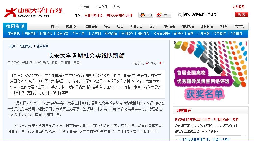 汽车学院:中国大学生在线网报道我院赴青海省暑期社会实践活动