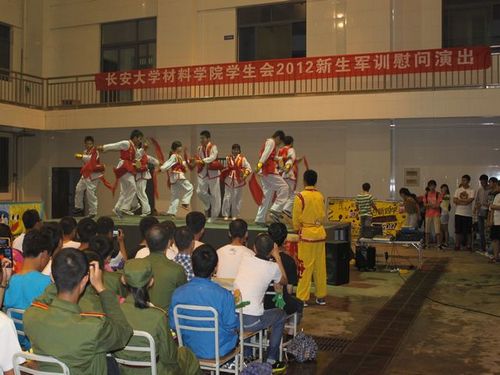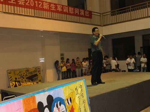 连日的刻苦训练着实让学院2012级新生体会到了军训的不易,为了给他们带去最真挚的问候,同时转达学院领导老师们的关心,我院于9月7日晚在降雨试验大厅举办了2012级新生军训慰问演出。出席本次晚会的有我院党委书记李昌林老师,党委副书记高雁北老师,党委副书记闫秀萍老师,长安大学军训师十团团长刘纯清教官,学办主任何红娟老师,团委书记杨树老师,团委副书记刘珺老师,12级辅导员况栋梁老师以及本次军训的全体承训教官。