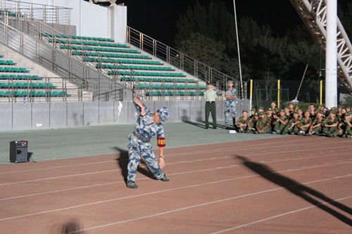 首先由信息学院团委学生会主席杨鹤凌同学发言并宣布演出正式开始。我院团委学生会和各社团精心准备的节目一一呈现在了所有观众面前。演出过程中氛围轻松愉快,节目形式丰富多彩。从黄土地文化社的腰鼓表演,到吉特巴翩翩的动人舞姿,从婉转动听的歌曲,到轮滑社惊险刺激的演出,从动漫社热力动感的舞蹈到活力四射的B-BOX表演,还有武术协会精彩绝伦的表演,一个个节目异彩纷呈,搏得了观众们一阵阵热烈的掌声。接下来的是游戏环节,在游戏环节中许多教官和同学们都积极地参与到了其中。教官们跟同学们一起做游戏,向同学表演了街舞等节目,把演出推向了高潮。最后,全体新生向所有教官们表示了感谢。在新生们响亮的“谢谢教官!”声中,信息学院新生慰问演出圆满落幕。