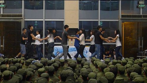 演出在一段充满青春活力的吉特巴舞蹈中开始。尔后精彩的互动环节、动听的男声小合唱以及火热的街舞表演更是赢得了同学们的阵阵掌声。互动环节中,在学长一曲《无所谓》之后,学弟学妹们不甘示弱,争相上台一展歌喉,掀起了全场的高潮。最后,由新生代表上台向教官们表达深深地感激与敬意。现场掌声不断,精彩迭出。最后,演出在阵阵的欢声笑语中圆满落幕。