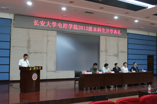 2012年9月16日上午九点,长安大学行政中心二楼会议室座无虚席,长安大学电控学院2012届新生开学典礼在此隆重举行。出席本次典礼的有电控学院党委书记马占平,院长巨永锋,党委副书记林贵宝,副院长许宏科、汪贵平,以及学院各系、部、室负责人, 2012级各班班主任,全体辅导员,全体新生和高年级学生代表参加大会。开学典礼由学院党委副书记林贵宝主持。