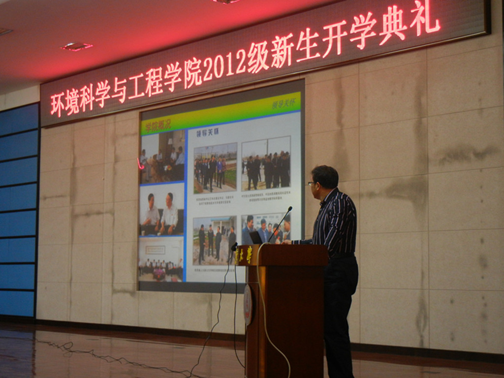 9月16日15:30,长安大学环境科学与工程学院在渭水会议中心召开了12级新生开学典礼。出席会议的领导老师有:院党委书记袁卫宁,院长王文科,副院长钱会,副院长李彦鹏,院党委副书记马明芳,学办主任王妍,团委副书记姚以亮,12级辅导员袁春博。