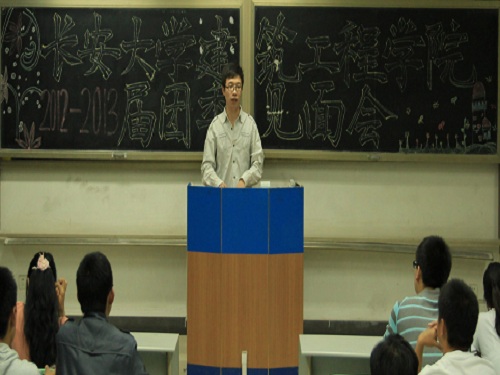 2012年9月19日晚七点,建工学院团委干事见面会在渭水校区修远2301室顺利举行。到会的有建工学院团委副书记张天成学长,书记助理陈美玲学姐,下设五部部长及五十四名新纳干事,加强了新纳干事对组织的了解,紧密了与组织的联系,为本届建工团委工作开启了第一篇。