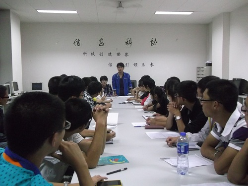 2012年9月23日 19:30,信息学院科协全体成员于院科协办公室召开2012-2013学期纳新后第一次例会。会议由办公室主任郑维佳主持。在主持人代表我院科协欢迎新成员加入讲话后,会议正式开始。