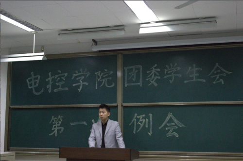 2012年9月25日晚七点,电控学院新一届团委学生会主席团成员,各部门部长和副部长以及各部门新干事齐聚一堂,在长安大学渭水校区明远教学楼1205教室举行我院新一届团委学生会第一次例会。本次会议的主要目的是加强各成员之间的了解,同时让大家对电控学院这学期由学生会主办的几次大型活动进行初步的认识,以便后期工作的顺利进行。会议由组织部副部长李良玉主持。