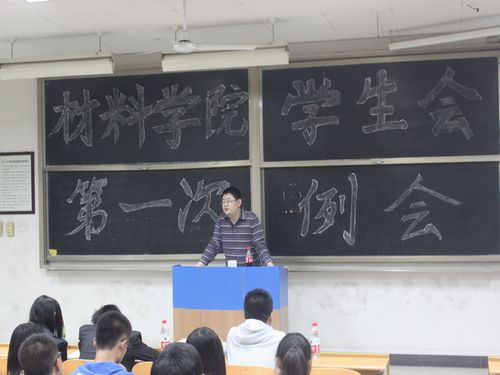 会议第一项由秘书处副秘书长丁宁同学宣读材料学院学生会规章制度以及管理机制,他在讲话中强调了学生会“引领思潮,全心全意为同学服务”的宗旨,同时要求学生会新干事努力做好本职工作,注重与其他部门的协调合作,不断创新发展学生会的工作模式。会议第二项由主席商敬东同学详细介绍材料学院学生会的各项工作,并就学生会成员的礼节、仪表等方面提出了具体要求。最后,他告诫每一位学生会成员都需要怀着感恩之心、服务之心,积极进取,努力拼搏,为学院建设做出贡献。会议第三项由杨树老师寄语新干事。杨老师首先对新干事们的到来表示热烈的欢迎,他希望干事在进入学生会后能够积极学习,认真工作,努力提高自己的修养和能力,同时也对新干事在学习、工作及生活等诸多方面提出了自己的期望和要求。