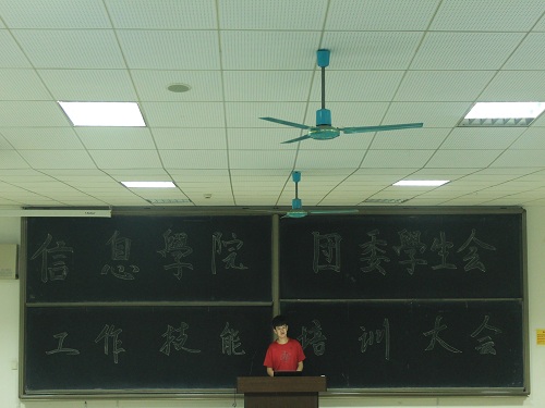 10月8日晚7点,信息学院团委学生会工作技能培训大会于渭水校区逸夫图书馆1101教室召开。信息学院团委学生会各部部长及干事参加了本次会议。会议由团委学生会秘书长左天主持。
