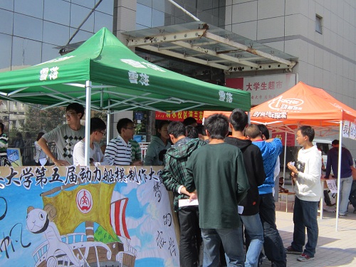 2012年10月10日,我校地测科协分别在东西区餐厅门口设立报名点,进行我校第五届动力船模制作大赛为期两天的报名活动。活动正在如火如荼的进行,地测科协人全线出动。活动进行地十分顺利。