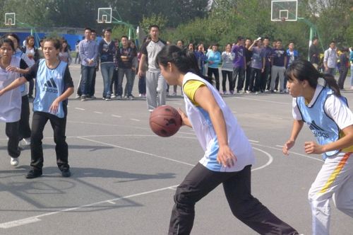 比赛未正式开始时,建工学院女篮队员们意气风发,摩拳擦掌,进行着热身活动,商量着作战策略,做好了随时上场的准备。裁判一声哨响,各队队员立即进入状态,两队你追我赶,拼力抗衡。面对环工学院女篮队员,建工学院三名女将勇往直前,势如破竹,凭借以往的经验,她们精妙的抢断,变幻的动作,使她们在战场上挥洒自如,一路遥遥领先,多次赢得现场观众的喝彩声。