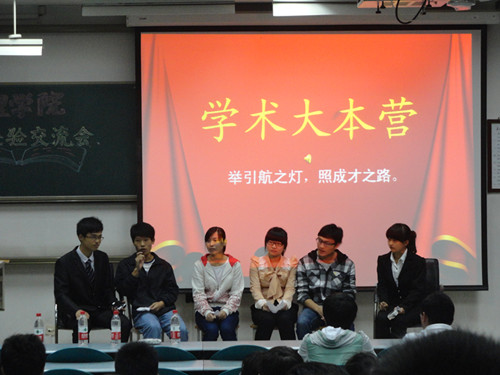 为了帮助大一新生尽快适应大学生活,早日步入学习正轨,理学院学生会学习调研部于10月12晚7:00在明远1205教室举办了一场别开生面的学习经验交流会。此次交流会邀请了11级四位学习优异的学长学姐作为嘉宾,全体大一新生参加了活动。