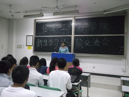 10月11日下午七点,我院于修远2区2101——2107教室分专业召开12级新生学习经验交流会。到会的有我院各专业所有新生、大二大三优秀学长学姐以及我院科协部分部长、副部长。在所有与会成员的掌声中,各主持人宣布交流会正式开始。