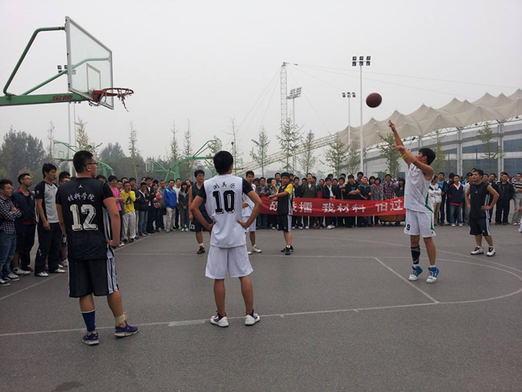 从第三节开始材料学院激勇奋进,打出一波漂亮的冲击波,比分迅速拉近。我院篮球队员立即调整状态,经过激烈的角逐,在距比赛结束还剩5秒的时候,环工学院还有两分优势,这时材料学院请求暂停。最后,在全场的倒数声中,材料学院投出一个三分球,希望以此来绝杀我院,但在我院球员严密的防守下,材料学院未能实现绝杀。最终我院以37:35赢得了本场比赛的胜利,杀入决赛!