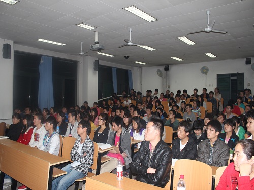 在讲座中,吕路学长用了生动的语言、鲜明的事例,并联系自身经历讲述了在校大学生应如何看待今天的就业形势、学会正确分析自己的长处与短处、面对目前的就业形势应如何转变就业观念等多个方面的问题。