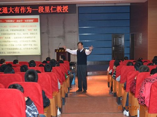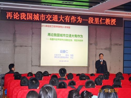 在讲座上,段里仁教授平易近人,用诙谐的语言与同学进行了面对面的交流。段教授说他所做的事是“研究交通,诠释交通,解决交通”。段教授对祖国交通事业做出的巨大贡献及当时精彩的讲座令全场同学钦佩。