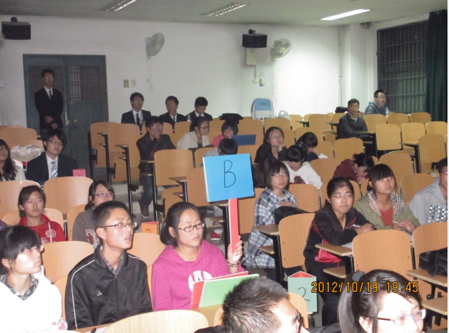 在初赛中成功突围的六支队伍参加了决赛。决赛共分为四个环节:第一环节风采展示中,六支队伍播放自己制作的ppt,同时配合以独特的方式了介绍自己的团队;第二环节答题开始,选手们认真思考本环节的六道共答单选题,力求旗开得胜;第三环节名为如履薄冰,如环节名称,本环节难度有所增加,分单选多选两种,每队各选两题作答,选手们也都表现良好。第五环节中每支队伍借助自己制作的ppt介绍自己的创业构想,接受嘉宾提问,选手们在这一环节中均展现了自己的出色的应变能力,并且他们对于创业构想栩栩如生的描绘也令听众