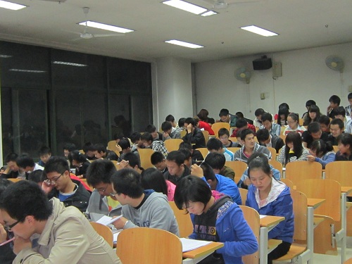 此次我院挑战赛以笔试的形式展开,在挑战赛的开始,由主考官宣布初赛规则,强调比赛的注意事项,然后分发试卷,考试开始。试题由单选题,多选题和判断题三部分组成。在活动过程中,各个小组都在认真地思考答卷,展现出了创业过程中必不可少的团队协作精神;主考官认真履行监考职责。整个活动过程中,同学们遵守纪律,活动进行十分顺利。