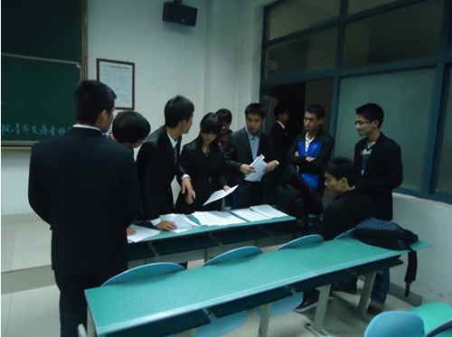 在本次志愿者招募活动中,报名人数众多,给面试带来了巨大的挑战,但在服务队各部长的有效组织下,面试过程井然有序,有条不紊。面试前期,服务队申请了面试教室,并指定相关面试官和会场纪律维持者,礼仪队同学在门口负责接待。每个教室安排了三个面试官,分三处,同时进行。这样既提高了面试效率,也充分利用了教室资源,为面试的正常进行打好了基础。