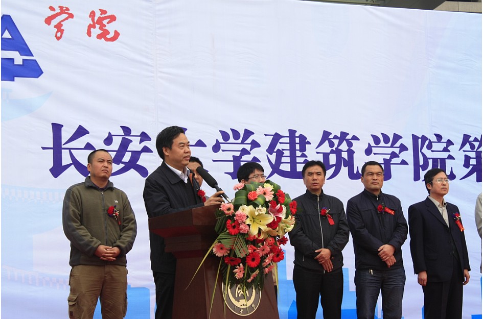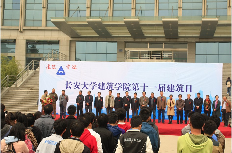 2012年10月26日,在长安大学建筑学院在渭水校区逸夫图书馆前,揭开了长安大学建筑学院第十一届建筑日的帷幕。出席本次开幕式的有,长安大学副校长赵均海老师,西安创元建筑建筑设计院有限公司院长李志平先生,筑博设计西安分公司总经理周军先生,长安大学党委宣传部部长黎开谊部长,长安大学学工部副部长、武装部部长徐卫老师,长安大学教务处副处长马恒生老师,长安大学研究生院副院长李修老师,长安大学渭水校区管委办公室主任袁春学老师,长安大学团委副书记张陵老师,建筑学院党委书记张炜老师,建筑日筹备委员会主席、建筑学院院长霍小平老师,建筑学院副院长武联老师,建筑学院副院长王农老师,建筑学院党委副书记李小芹老师,建筑学院党委副书记史少鹏老师,建筑学院团委书记刘鹏老师等以及2012、2011、2010级建筑学院全体学生。大会由建筑学院团委学生会主席李小龙同学主持。