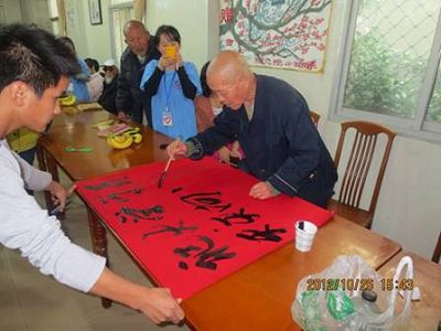2012年10月26日中午1点半左右,在建工学院青年志愿者服务队主席杨墨潇学长的带领下,建工学院青年志愿者服务队组织了27名爱心志愿者慰问了裕华老年公寓的老人们。