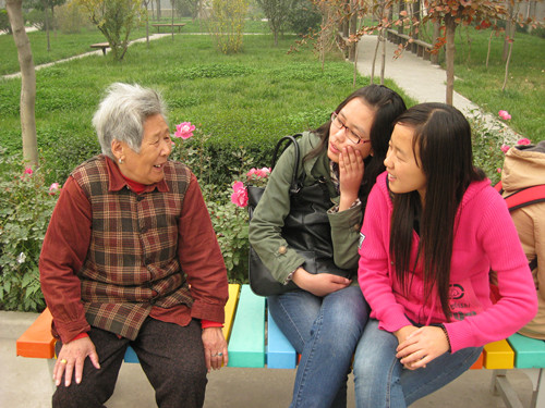 而后,护工领着同学们到房间探望老人,老人们对同学们的到来都感到很开心,不停地说着谢谢。女生们陪老人们聊天,询问他们的生活情况。同学们把准备的节目拿出来,唱歌,演奏长笛,老人们脸上一直洋溢着笑容。