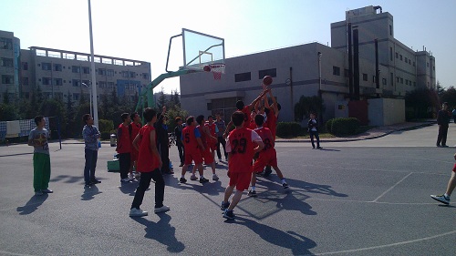 比赛前,赛场上热闹非凡,聚集了各班的代表队、篮球爱好者以及热情洋溢的拉拉队。12点半时,比赛正式开始。高高抛起的篮球点燃了本届篮球赛的激情,在本着“公平,公正,公开”的原则下,各班以“狭路相逢勇者胜”的气势展开了对决,双方抢球、断球、防守、进攻,严守硬对、激烈争夺、默契传球、完美配合,赢得了场下观众们的阵阵喝彩声。
