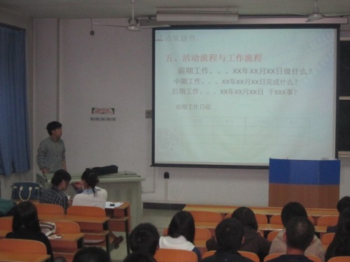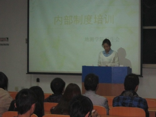 大会主要分内部培训和基本礼仪培训两部分。首先由陈禹彤部长发言,她就各部门优秀干事评选制度作了详细的说明,并勉励各位干事积极主动参与学生会的各项事务,大胆展现自我。接着,由主席助理黄文波详细介绍了有关策划书、新闻稿、申请书、述职报告等文体的基本书写方法。最后,由李蔚华副主席着重讲解基础礼仪,在讲解行为礼仪的过程中,利用干事自编自演的小情景剧“非诚勿扰”加深各位干事对站姿、坐姿等的印象,形象而生动的强调了行为礼仪的重要性。另外她还展开讲解了化妆礼仪的严肃性以及男女服装礼仪、会晤礼仪等内容。