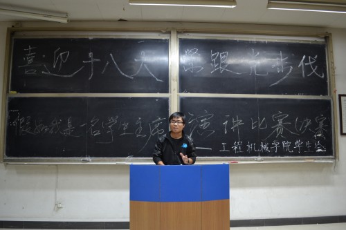 11月4日晚,我院在渭水校区修远教学楼成功举办了“喜迎十八大,紧跟党步伐”演讲比赛决赛。本次比赛以“假如我是一名学生主席”为主题,由我院学生会学习部主办。机械学院学生会副主席陆伟丹,英语联盟副主席宋玉涵,哲思演讲辩论协会辩论部部长方毅华、演讲部部长吕勇出席了比赛并担任评委。