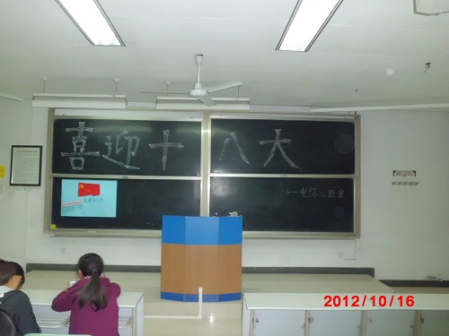为响应十八大召开的号召,信息学院12级电信二班全体同学于11月2日晚在修远2301教室举行“响应十八大动员”大会