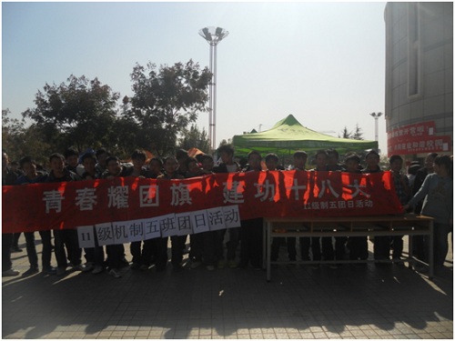 盼望着,盼望着……好多人啊,大家都赶紧忙起来吧!“同学,今天是我们的团日活动,主题是喜迎十八大,请在这里留名表达自己的爱国之情吧” “哎,同学,今天我们的团日活动请多多支持”,虽然有时候也会碰灰,但是我们仍然乐此不疲。