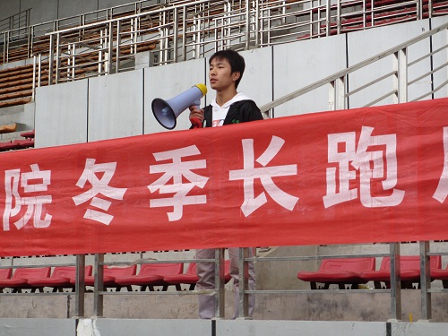 启动仪式开始,我院团委副书记段少帅致开幕词,讲话中,段少帅副书记多次提到体育运动的重要性,并以早在二千多年前古希腊山岩上刻下的“如果你想强壮,跑步吧!如果你想健美,跑步吧!如果你想聪明,跑步吧!”这三句古话来激励同学们积极参与本次活动。在团委副书记段少帅宣布启动仪式正式开始之后,同学们在手持“长安大学资源学院”院旗的同学带领下开始了绕场一周的跑步。
