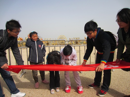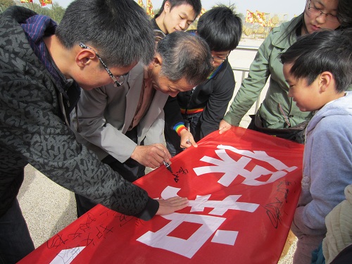 早上8点半整全体同学在校南门口集合,合影留念。本次活动分为五个小组分别在五个地点进行,地点分别是:钟鼓楼、城墙、雁塔、大明宫、省博物馆。各小组在组长的带领下安全抵达了目的地,按照分工:两名同学拉起印有“保护文物”文字的横幅,一名同学准备相机拍照,其他四位同学为游人讲解保护文物的相关知识,呼吁大家从我做起,共同保护历史遗迹,并请游人在横幅上签字代表履行承诺。活动期间,同学们受到叔叔阿姨的高度赞扬,热情的爷爷奶奶也展示了他们的书法,还有几位可爱的小朋友也参与进来......大家积极宣传,为游人普及了许多保护文物的知识。活动为期半天,在其乐融融的氛围中,我们班此次团日活动圆满结束,成效喜人。
