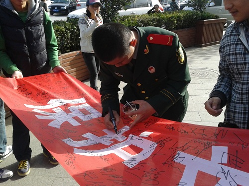 钟楼站的同学邀请军人签字