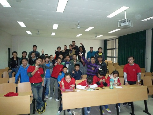 下午两点半,全班同学冒着寒风,带着愿望,开开心心来到了教室,他们先开展了一些小活动,让全场都high了起来,然后每个人在一张小纸上写上了对祖国的期待和自己的愿望,将纸叠好,放在了愿望瓶里。接着,集体去了东区小土坡上,将期待和愿望种在了土里,集体吼出:“机制五班全体同学预祝十八大顺利召开,祝长安大学越来越好”