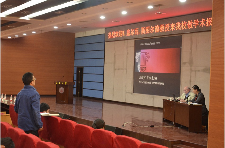 2012年11月10日,建筑学院在渭水校区行政中心报告厅进行了关于可持续设计的学术交流。主讲人是美国建筑师协会前任主席,w.塞尔西 斯图尔德教授。塞尔西教授以“让明智决策明智:可持续设计势在必行”为题与我院学子展开交流。建筑学院副院长王农老师、党委副书记史少鹏老师、团委书记刘鹏老师以及建筑学院11级至09级的全体学生参加了本次讲座。副院长王农老师主持了讲座。